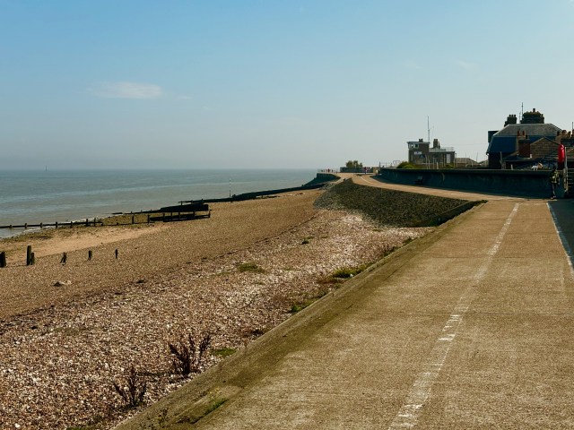 On a clear day, the beach provides stunning views of the Essex coast across the Thames Estuary.